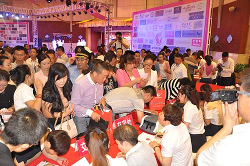 8月6日活動當天,四季青國際服裝城招商發(fā)布會現(xiàn)場人頭攢動、熱鬧非凡,一場以四季青加盟品牌的時尚服裝秀正在精彩上演。主辦方臺上為大家演示全新的020電子商務運營模式,臺下的觀眾邊聽邊記,更有著急的客戶,按耐不住激動的心情,紛紛要求交錢定鋪。工作人員穿梭于客戶之間,一一回答他們提出的問題。