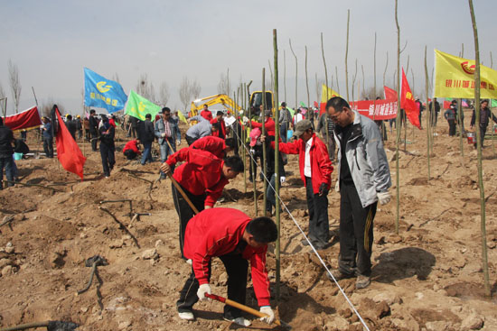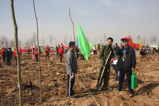 4月6日,陽光明媚,春風(fēng)拂面,銀川市覽山公園北園博園義務(wù)植樹基地一片繁忙景象。當(dāng)日,寧夏回族自治區(qū)2012年全民義務(wù)植樹活動(dòng)啟動(dòng)。自治區(qū)、銀川市綠委辦組織駐銀中央、自治區(qū)、銀川市行政機(jī)關(guān)、企事業(yè)單位的干部職工、學(xué)校師生和部隊(duì)官兵等共5000余人參加了義務(wù)植樹活動(dòng)。